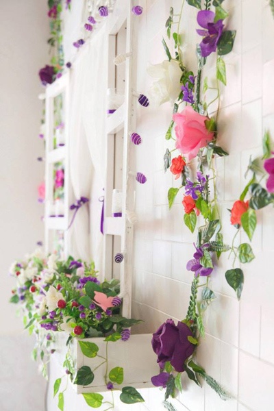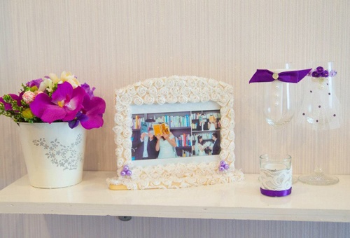 Chủ đạo là phong cách cưới, không gian của quán lãng mạn và thơ mộng với sắc trắng tinh khiết của tường, bàn ghế, những chiếc kệ bé xinh xinh hòa quyện cùng sắc tím của hoa, của khăn trải bàn, của rèm cửa và những chiến gối ngồi... Đó cũng có thể là sự nhấn nhá theo một trật tự nhất định giữa dây leo xanh biếc và xích đu thơm mùi gỗ. Giữa những cánh bướm nhiều màu sắc dập dìu bên những chiếc đèn hoa. Hay cảm giác tuyệt mỹ của những bó hoa cưới đặt rải rác trong quán mang lại.