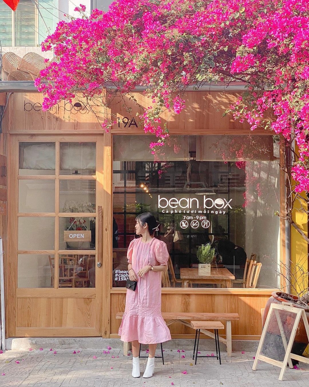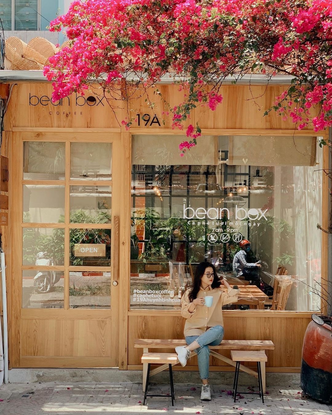 Không gian nơi đây chủ yếu sử dụng ánh sáng tự nhiên. Phía trước quán là địa điểm lên hình được nhiều bạn trẻ yêu thích với dàn hoa giấy nở rộ và backgound khung cửa gỗ. Đồ uống của quán còn khá hạn chế với cà phê, trà trái cây và cold brew.