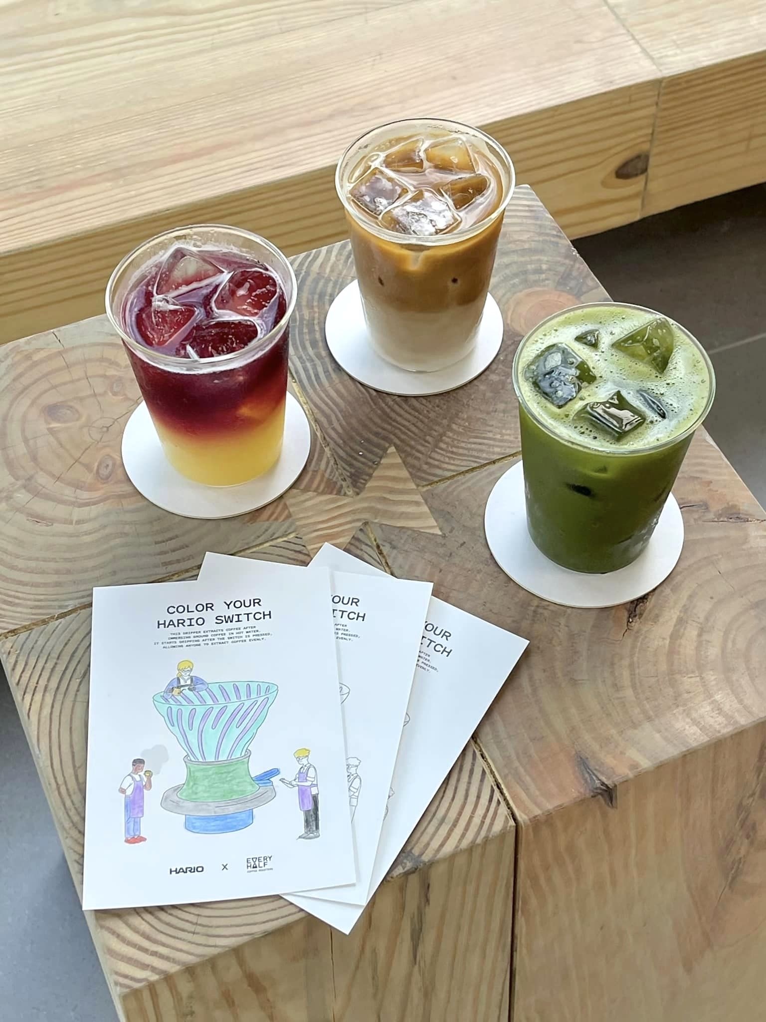 - Thực đơn đồ uống với hơn 50 lựa chọn. Cà phê trứng, cà phê dừa, cà phê ngũ cốc, sữa chua dâu rừng, cold brew bưởi hồng, kombucha bưởi hồng, trà dâu, trà cam quế... là gợi ý đáng thử. Tiệm cũng phục vụ các loại bánh danish, crossaint, waffle, matcha cheese cake, banana muffin, tiramisu...
