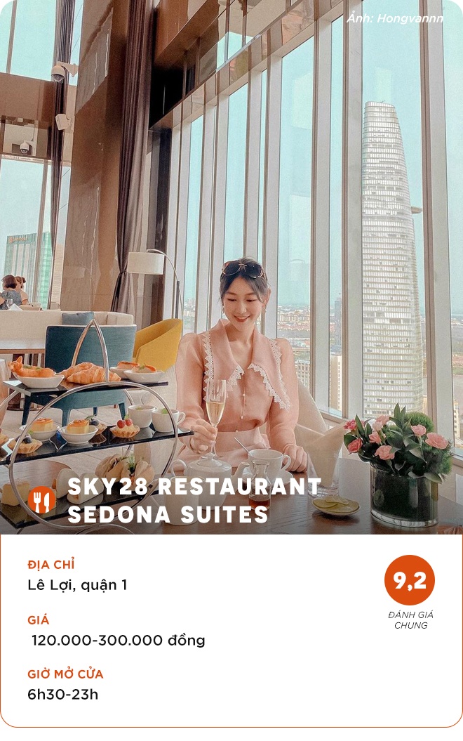 Nhà hàng nằm ở tầng 28 của một chung cư TP.HCM là nơi ngắm thành phố trên cao được lòng giới trẻ. Tại đây, ngoài view Bitexco, bạn có thể thu trọn vào tầm mắt tòa nhà Landmark 81.