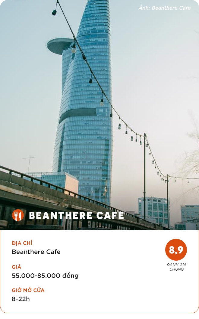 Nằm sát Bitexco, chi nhánh Đồng Khởi của Beanthere Cafe thu hút thực khách với góc sống ảo hút mắt cùng biểu tượng Sài thành. Ngoài ra, quán cũng sở hữu view sông ngắm cảnh ấn tượng