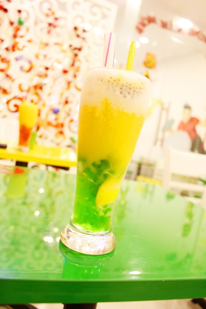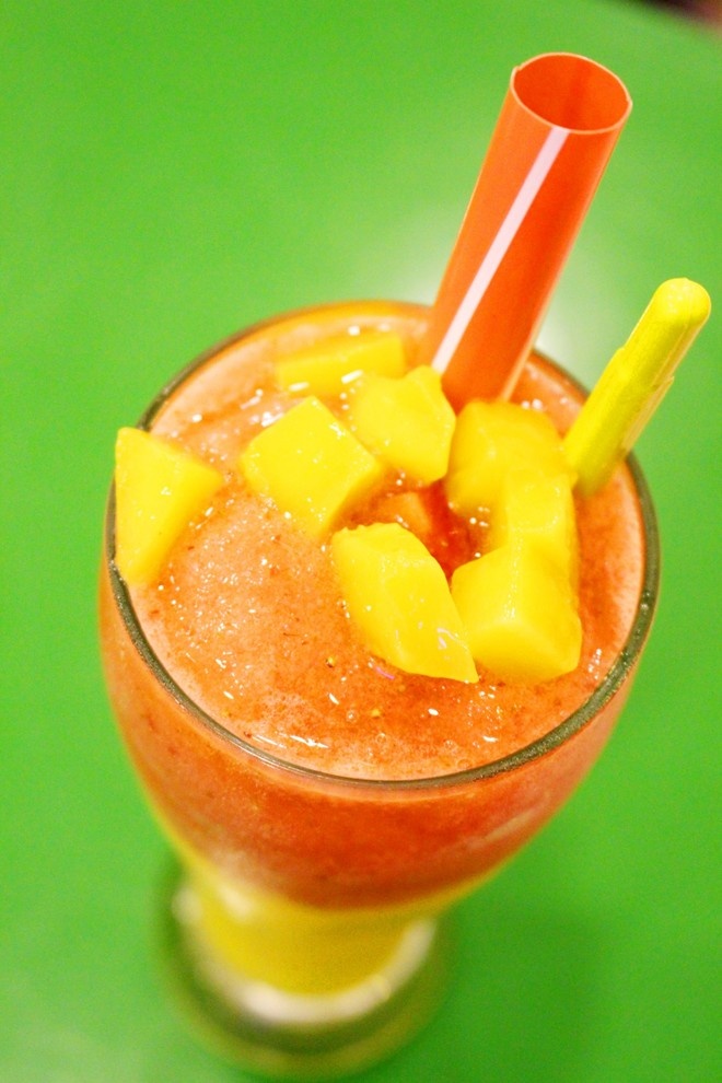 | Quán có hơn 100 món tráng miệng được chia thành nhiều dòng khác nhau. Nhiều nhất là các món nước từ xoài. Sau khi xay, hỗn hợp xoài đá được kết hợp với hàng loạt nguyên vật liệu khác nhau mang đến cho bạn những món nước tươi mát. Ảnh: Hà Mỹ Giang. |