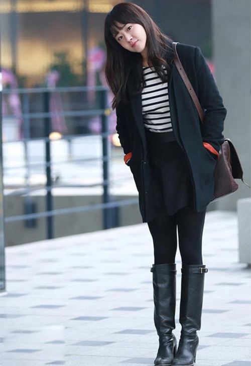 Ngoài áo choàng dài thì váy liền thân nữ tính, áo len cardigan cũng được tiểu thư xinh đẹp ứng dụng nhiều.