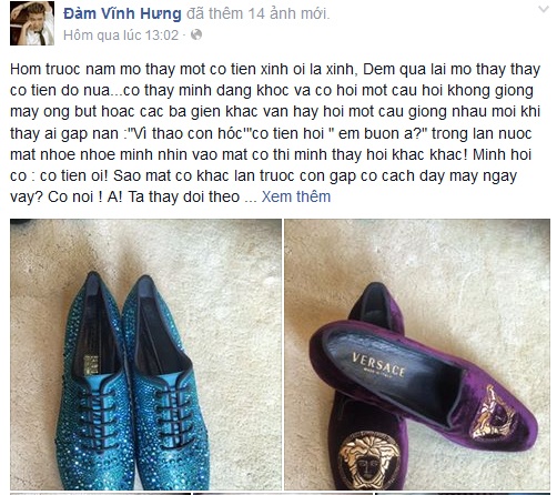 | Không kém cạnh Ngọc Trinh, “ông hoàng nhạc Việt” là người khá sành mốt, song anh lại khá kín tiếng trong việc chia sẻ về giá cả cũng như khoe việc mua sắm trên trang cá nhân. Anh chọn cách thể hiện khá khéo léo khi mượn câu truyện Tấm Cám để dẫn dắt việc khoe khéo những đôi giày khủng. |