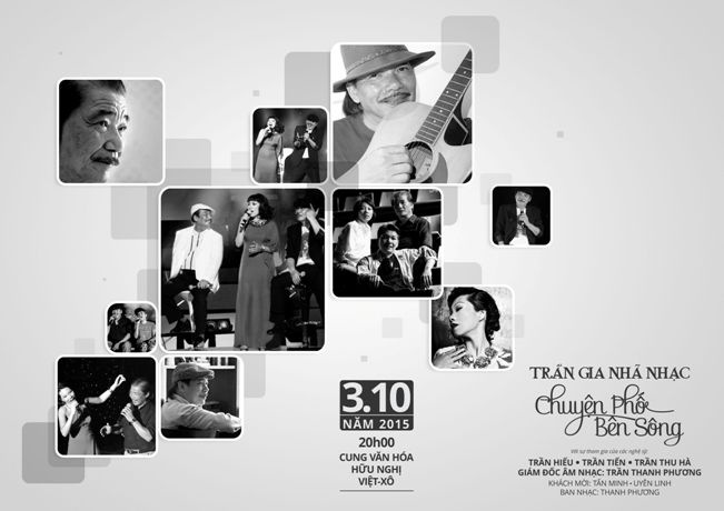Chuyện phố bên sông là live show đầu tiên trong chuỗi đêm nhạc của Trần gia nhã nhạc, với sự góp mặt của NSND Trần Hiếu, nhạc sĩ Trần Tiến và diva Trần Thu Hà. Chương trình sẽ diễn ra vào ngày 3/10 tại Cung văn hóa hữu nghị Việt Xô, Hà Nội. Đêm nhạc là câu chuyện của gia đình nghệ sĩ Hà Nội trải qua nhiều biến cố cũng như thăng trầm, được nhạc sĩ Trần Tiến lưu giữ lại bằng âm nhạc.