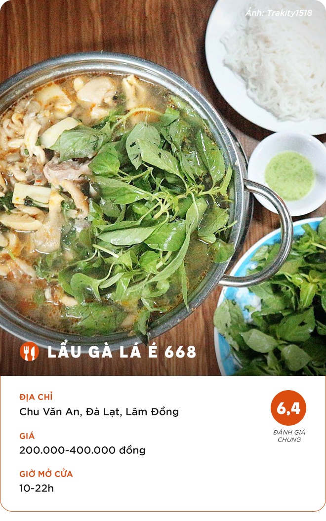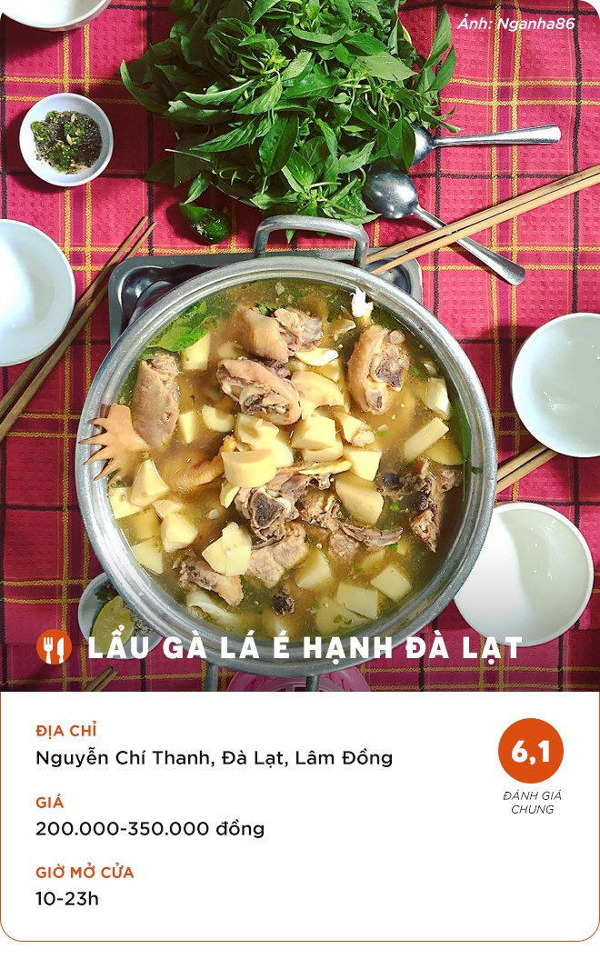 Dưới đây là những địa chỉ lẩu gà lá é ngon để bạn tham khảo khi tới Đà Lạt.