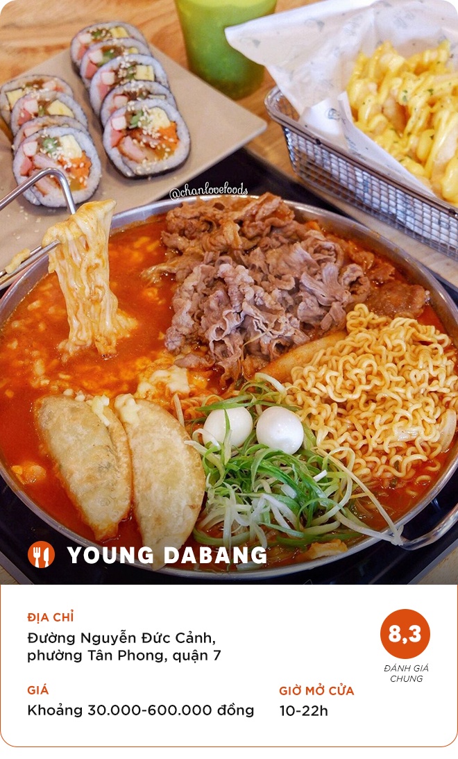 Minh Đan: "Không gian to, đẹp, ngay mặt đường. Nồi lẩu lớn và nhiều đồ ăn kèm. Phần nhỏ dành cho 2 đến 3 người có thể ăn cho 3 đến 4 người. Nước lẩu vừa miệng, đậm đà, đúng kiểu ớt Hàn Quốc. Cọng tokbokki ở đây dài, khá lạ, dai và mềm, có kéo sẵn cắt ra. Phô mai thơm béo. Panchan kim chi ăn kèm ngon. Giá rẻ. Nước lọc dùng miễn phí. Lẩu chả cá nhiều màu sắc. Nước ở đây không nhiều lựa chọn. Nước bí ngô khá khó uống".