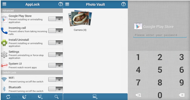 App Lock - một ứng dụng miễn phí trên Play Store - cung cấp tính năng hoàn toàn tương tự. Bạn có thể cài đặt để người cầm máy phải gõ mật khẩu khi mở một ứng dụng nhất định, thay đổi cài đặt hệ thống, gỡ bỏ chương trình hoặc trả lời cuộc gọi...