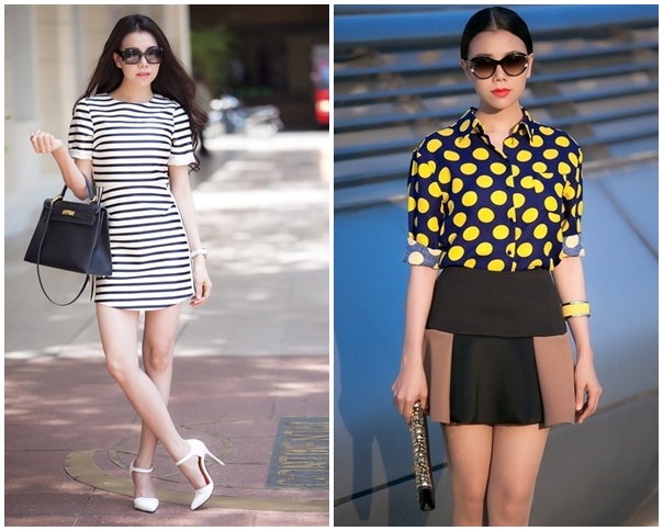 Những lần xuống phố cùng loạt hàng hiệu của Trà Ngọc Hằng. Qua đó, người đẹp cho thấy khả năng nhanh nhạy xu hướng khi là người trưng diện kiểu mốt mới đầu tiên tại Việt Nam.