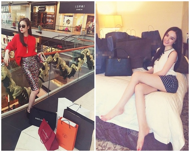 Angela Phương Trinh: Không kém cạnh đàn chị Thu Minh về độ sành mốt, năm 2014 của "bà mẹ nhí" cũng là năm nổi bật của người đẹp cùng tỷ xuất mua sắm, xuất hiện với loạt hàng hiệu gây chú ý thảm đỏ sự kiện showbiz Việt. Trong sự kiện Tuần lễ thời trang quốc tế Việt Nam, Angela Phương Trinh trở thành tâm điểm chú ý khi diện bộ váy hiệu Dolce & Gabbana đỏ với họa tiết thêu sang trọng. Theo "nữ hoàng thị phi" tiết lộ, chiếc váy được mua cách ngày diễn ra sự kiện 2 tuần tại Singapore với giá 3.000 USD.