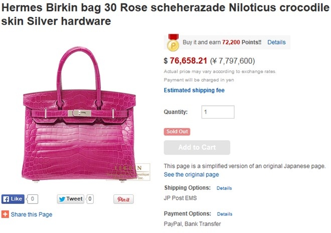 Chiếc túi có giá bán trên website là hơn 77.000 USD, tuy nhiên, nhờ việc là khách hàng quen thuộc, Ngọc Trinh mua được với giá 70.000 USD (gần 1,5 tỷ đồng).