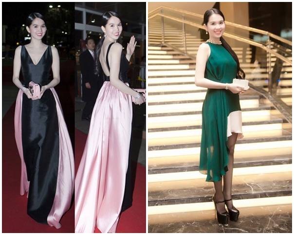 Trước đó, Ngọc Trinh có tiếng là người chịu chi về trang phục. Cô thường xuyên xuất hiện với những bộ cánh lộng lẫy, thuộc nhãn hàng lớn, có giá trị lên đến hàng trăm triệu. Trong ảnh (bên trái) là bộ đầm trị giá 200 triệu đồng thuộc nhãn hàng Valentino. Thiết kế được mặc khi Ngọc Trinh tham dự một sự kiện tại Hàn Quốc. Nhiều lần sau đó, Ngọc Trinh chứng tỏ độ sành điệu và chịu chơi của mình khi xuất hiện với thiết kế của hãng Dior có giá 5.000 USD (hình phải).