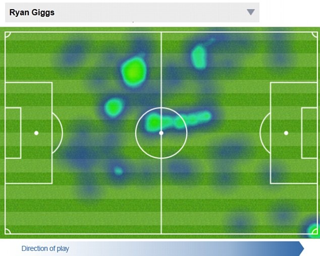 | Biểu đồ hiển thị khả năng bao sân của Ryan Giggs. Ảnh: Dailly Mail. |