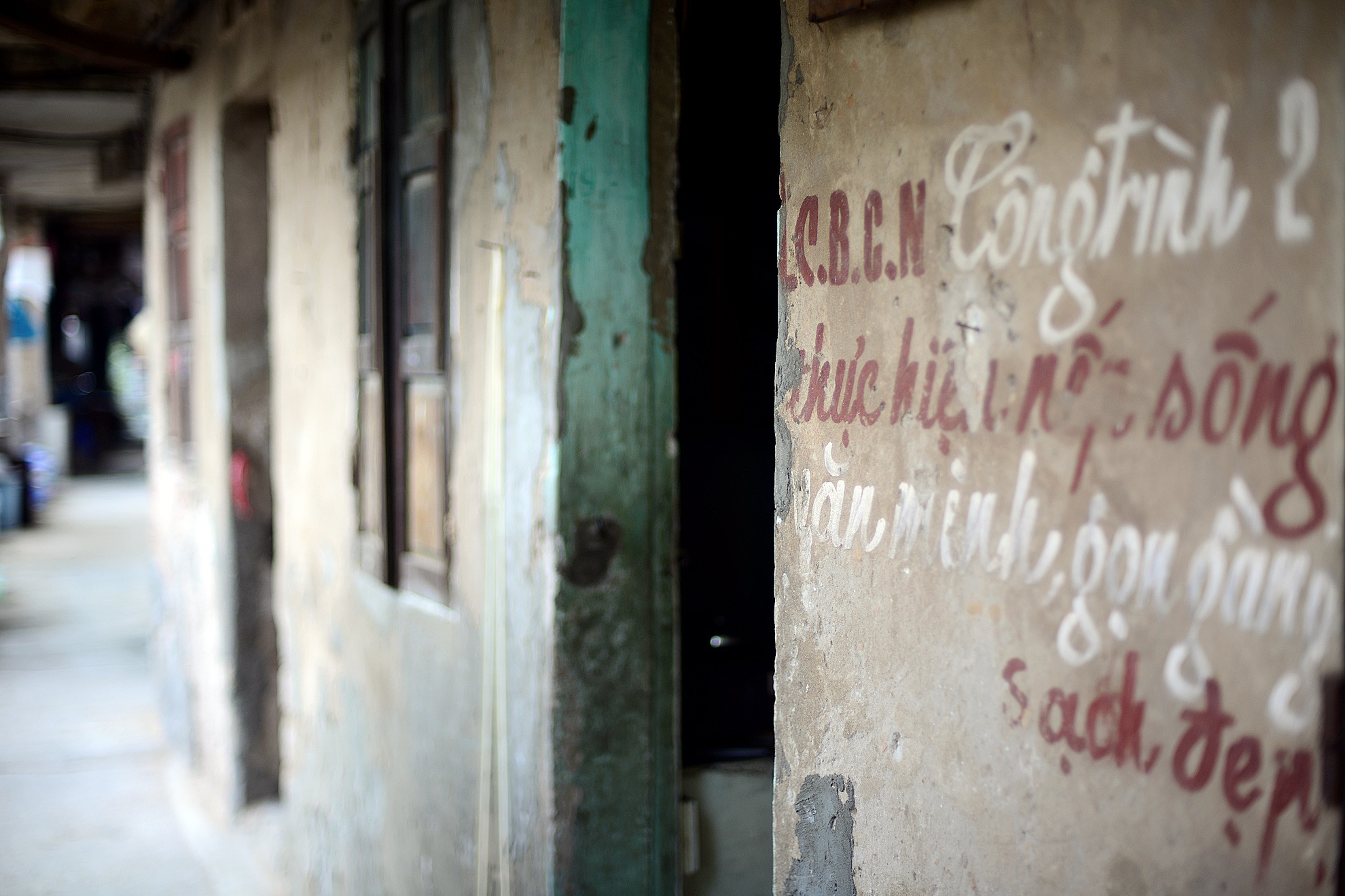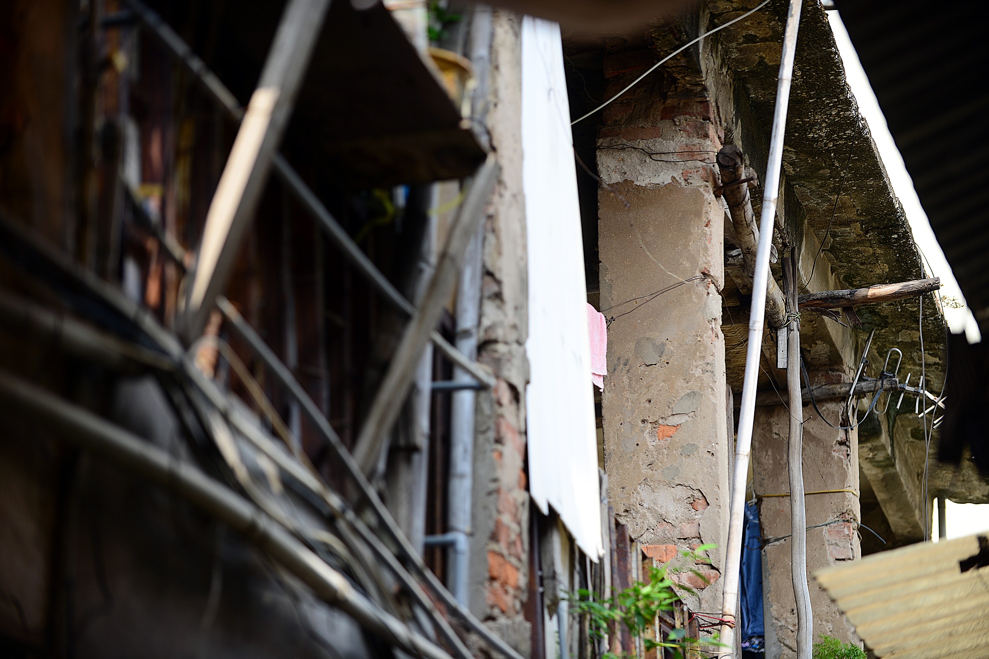 | Mục đích ban đầu chỉ là xây nhà tạm cho công nhân viên có nơi ở. Sau hơn 30 năm sử dụng, gần như cả khu bị hư hỏng nặng. Trần, dầm, cột liên tục bị bong, lở, trơ lại từng mảng sắt thép hoen rỉ. |