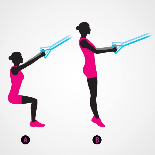 Để thực hiện bài tập, bạn đứng thẳng người đứng trước máy kéo có tay cầm, hai tay nắm tay cầm, kéo ra đằng trước mặt. Sau đó, bạn duỗi thẳng cánh tay của bạn cho đến khi nắm đấm đang ở mức xấp xỉ ngang tầm mắt và có sự căng thẳng trên dây đai.