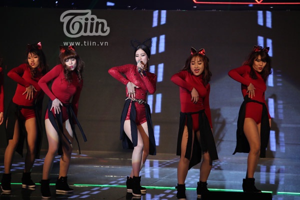 | Đông Nhi trình diễn Shake the Rhythm trên sân khấu. |