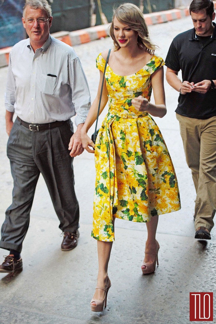 Kiểu đầm xòe đơn giản luôn được cô khoác thêm vẻ tươi mới với những bông hoa rực rỡ. Nhờ thế mà Taylor trông luôn đầy sức sống và trẻ trung hơn tuổi.