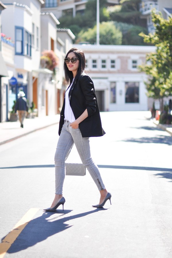 Áo blazer đen: Đây là đồ nên đầu tư khi bước chân vào công sở. Bạn sẽ không tìm thấy một phong cách phù hợp và hoàn hảo nào hơn khi lựa chọn một chiếc blazer đen. Bạn có thể khoác nó cùng áo phông, quần jeans hay áo sơ mi cùng chân váy juýp, chiếc blazer như một món phụ kiện khiến cho bộ đồ của bạn trở nên quyền lực hơn cả.