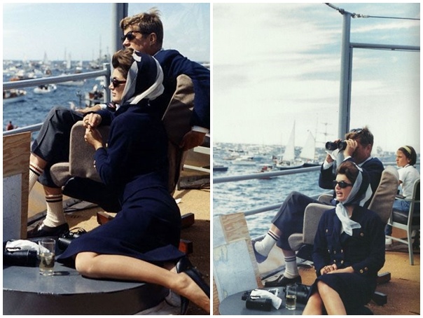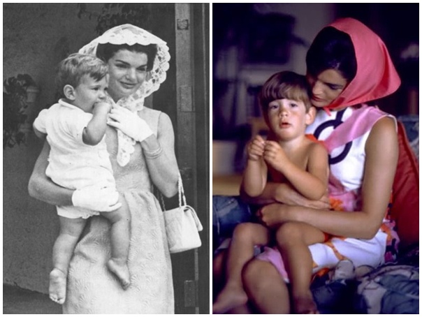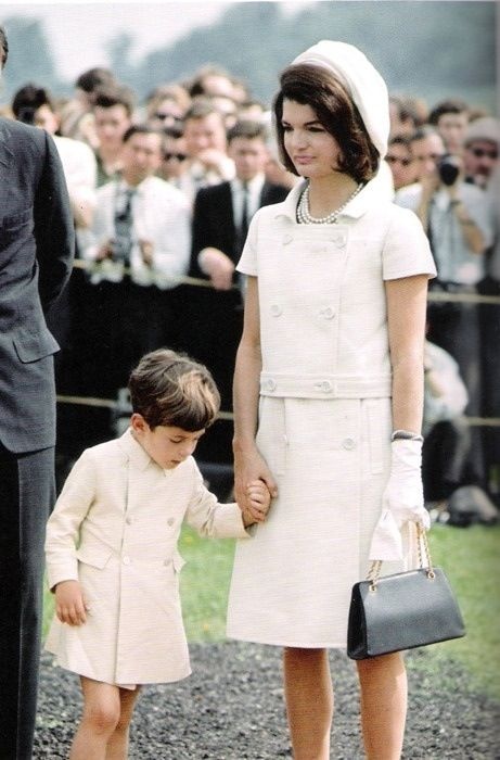 Bà Jacqueline Kennedy và con trai diện trang phục đồng tông màu.