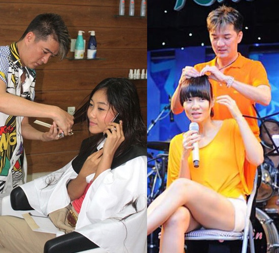 | Đàm Vĩnh Hưng đích thân làm tóc cho Đoan Trang, Thu Minh. |