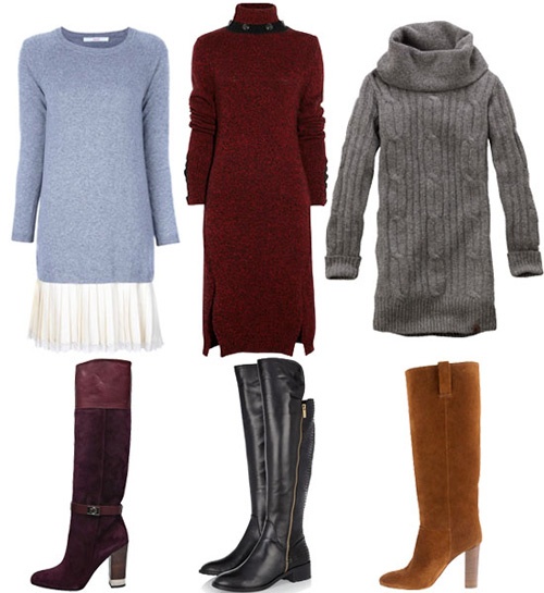 Một số cách phối hợp váy len/ váy dạ với bốt cao gối rất đẹp và nữ tính.