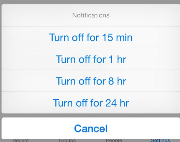Ngoài ra, bạn có thể lựa chọn nhận thông báo bao lâu một lần. Click vào biểu tượng chữ “i” ở phía trên bên phải màn hình, chọn “Notification” và lựa chọn khoảng thời gian bạn muốn đặt chế độ im lặng cho phần thông báo.