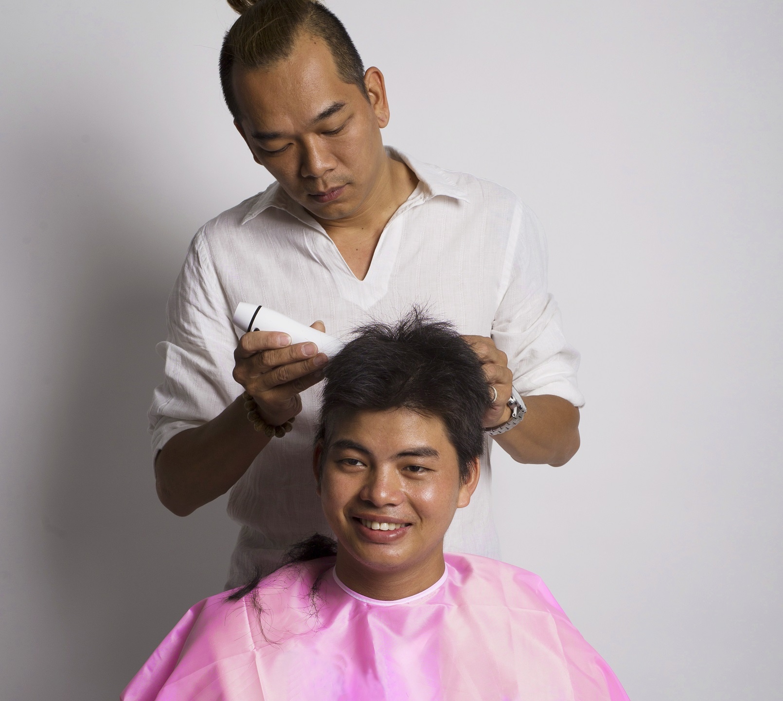 | Phạm Tâm Tuấn Khương, người đưa ra ý tưởng nội dung bộ ảnh cho hay: “Thấu hiểu những khó khăn, vết thương trên cơ thể và tổn thương trong tâm hồn mà các bệnh nhân ung thư phải gánh chịu như: tóc rụng, da dẻ nhăn nheo, cháy xạm…, tôi và các tình nguyện viên đều cạo đầu với mong muốn tôn lên vẻ xinh đẹp của hai chị nhân vật chính vì giá trị con người không phụ thuộc vào hình hài". |