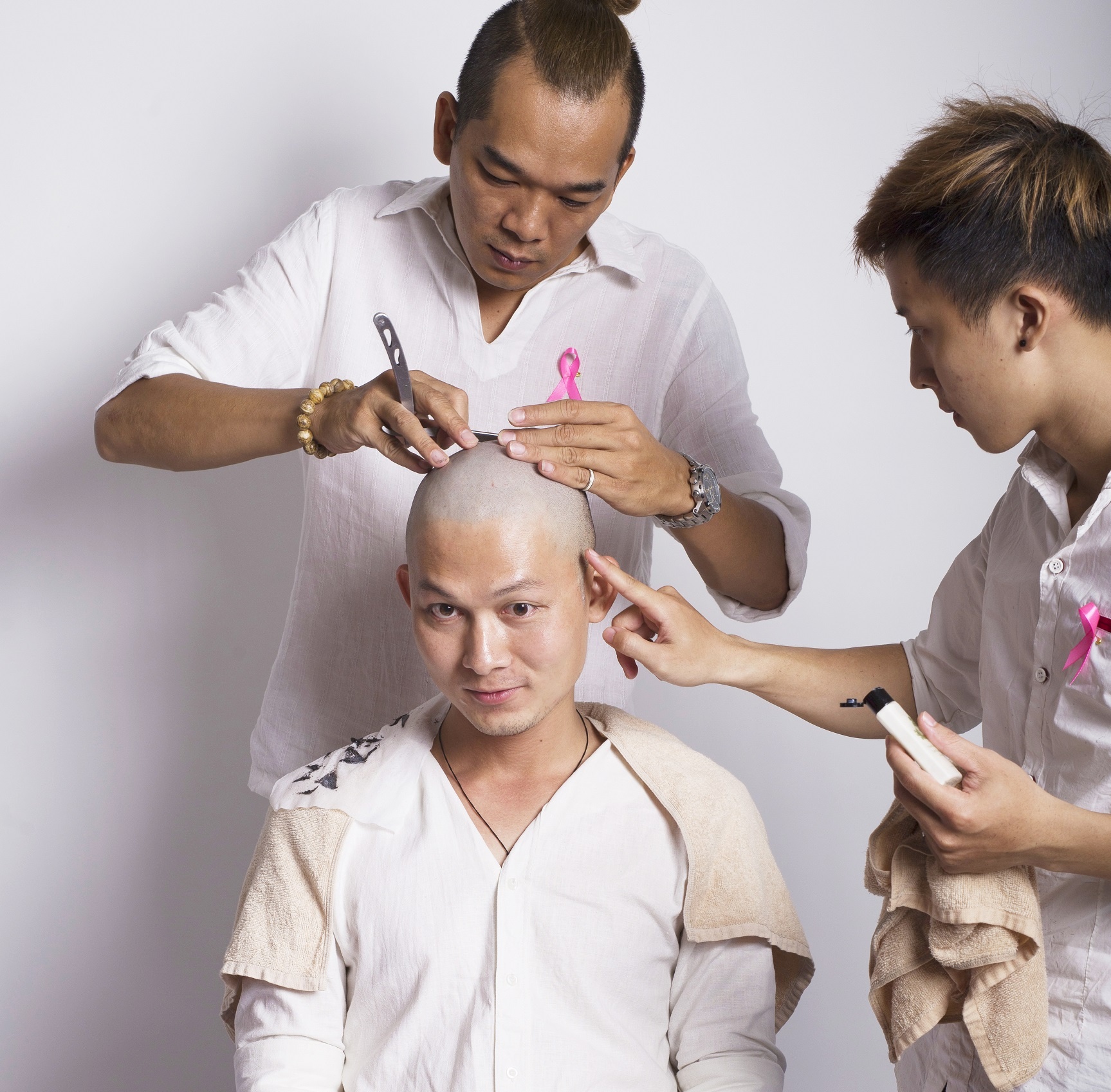 Thấu hiểu nỗi đau, sự mất mát của bệnh nhân mắc bệnh ung thư vú, các nam tình nguyện viên tham gia xuống tóc thay cho lời cổ vũ và động viên tinh thần gửi đến họ.