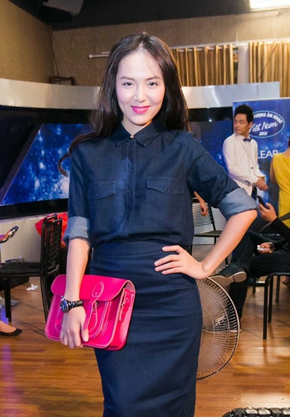 | Thanh Hằng chọn chút biến tấu với sơ mi denim dáng boxy khỏe khoắn. |