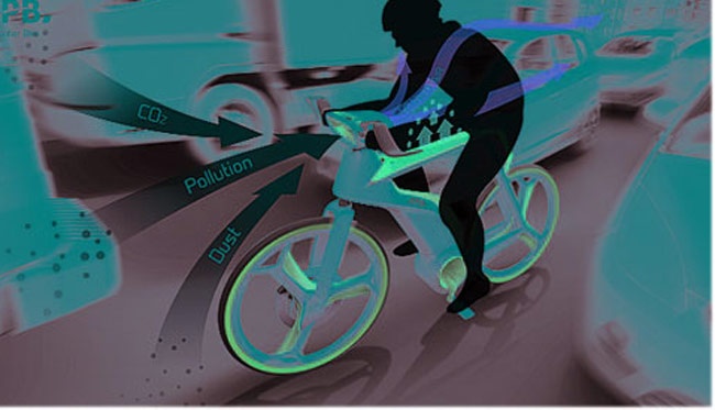 Xe đạp lọc không khí Đây không chỉ là một phương thức di chuyển thông thường dành cho con người, mà còn có chức năng hoạt động như một máy lọc không khí. Chiếc xe đạp điện được thiết kế với một bộ lọc bụi và carbon monoxide gắn ở đằng trước. Bộ phận này sẽ ngăn luồng không khí ô nhiễm xộc vào mũi người đạp xe và thổi luồng không khí đã làm sạch về phía người lái. |