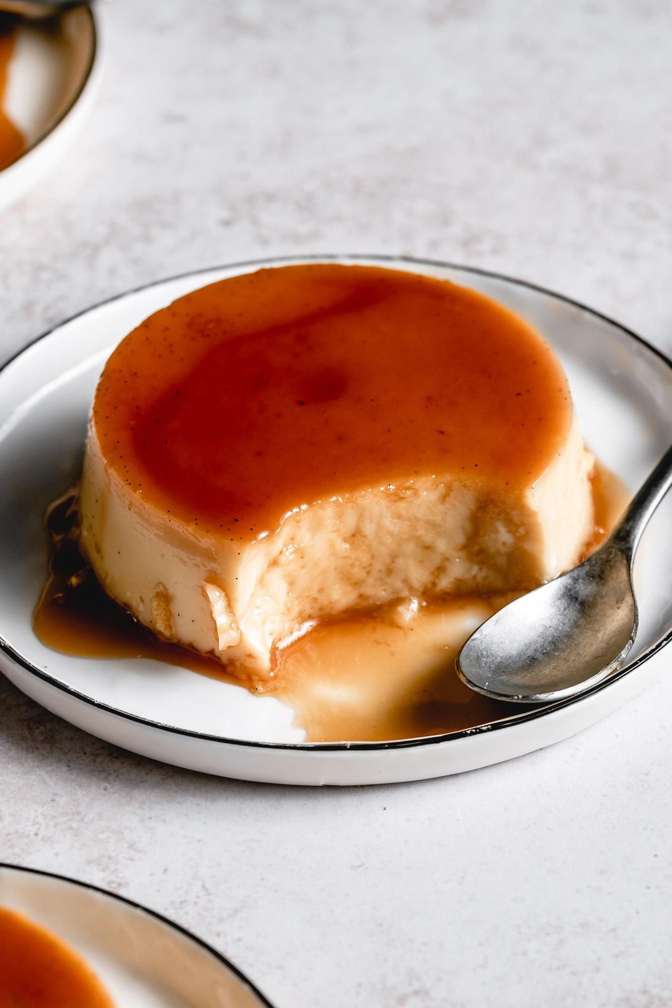 - Nấu sữa tươi trên lửa nhỏ, khuấy đều. Đập trứng gà, lấy lòng đỏ đánh bông lên rồi đổ vào nồi sữa tươi đã đun sôi. Thêm 2 ống vani, khuấy đều khoảng 3 phút thì cho hỗn hợp vào khuôn caramel.