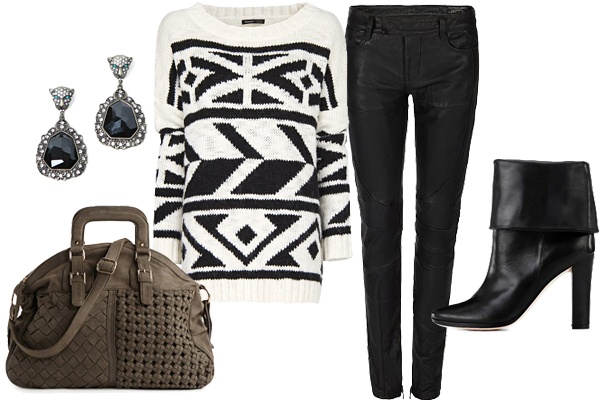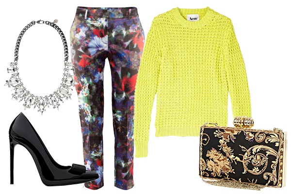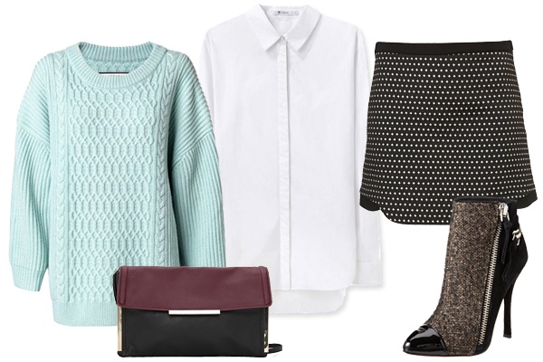 Áo len tông màu sáng mix với quần họa tiết nổi bật mang lại vẻ tươi trẻ trong thời tiết âm u của mùa đông. Một đôi giày cao gót giúp bạn ăn gian chiều cao, mang đến độ thanh thoát khi diện trang phục quá khổ. |