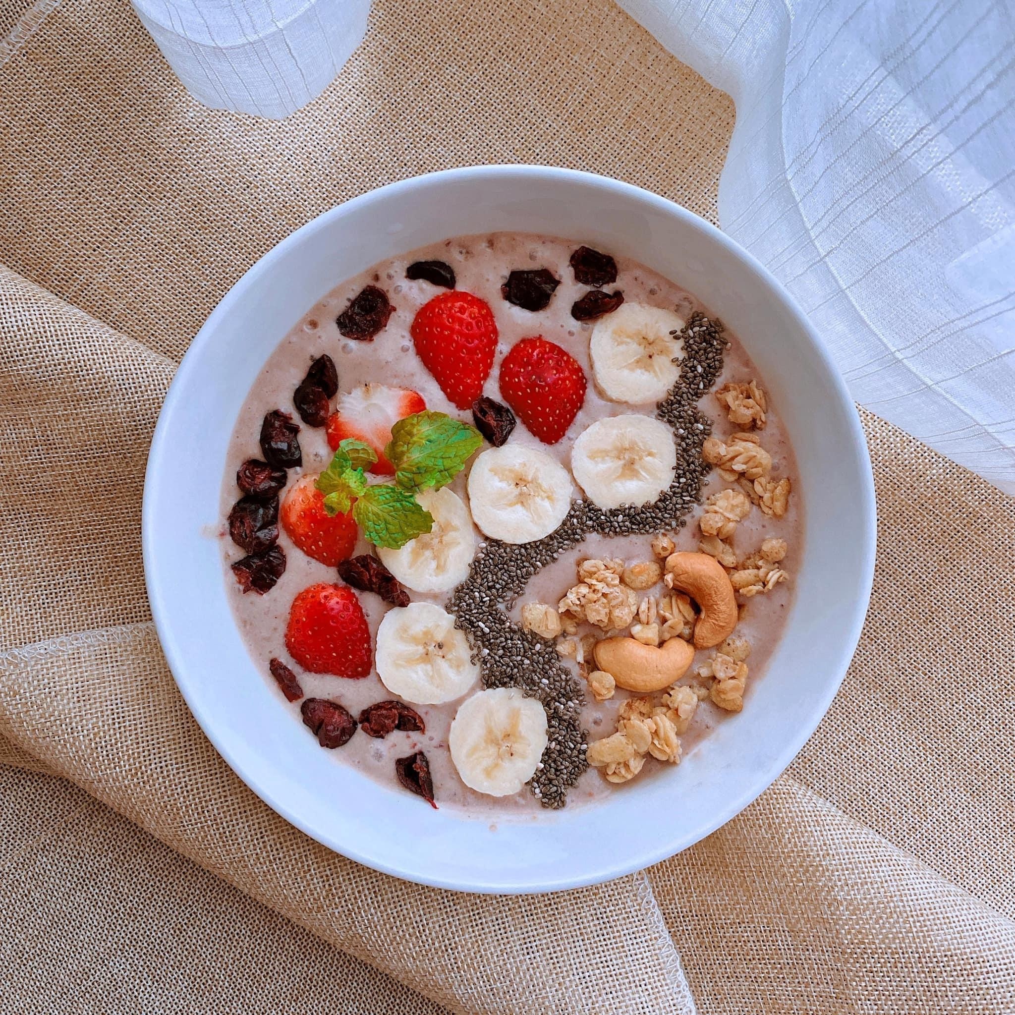 Smoothie bowl chuối dâu