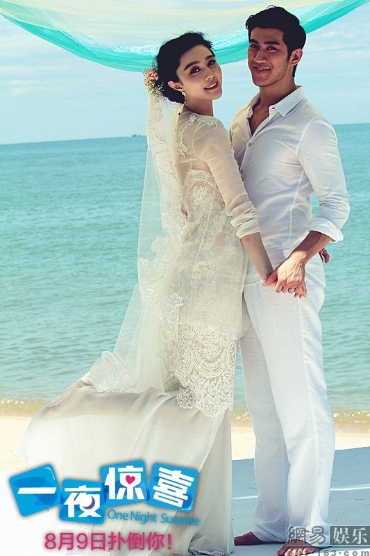 “Nữ hoàng thị phi” đã làm không ít khán giả nữ ganh tỵ khi có một đám cưới lãng mạn bên bờ biển trong phim điện ảnh Đêm vui bất ngờ. Giữa khung cảnh thiên nhiên xanh mát, Phạm Băng Băng khoác lên mình bộ váy cưới tuyệt đẹp và hạnh phúc khoác tay chú rể đẹp trai Lý Trị Đình.