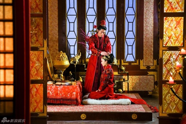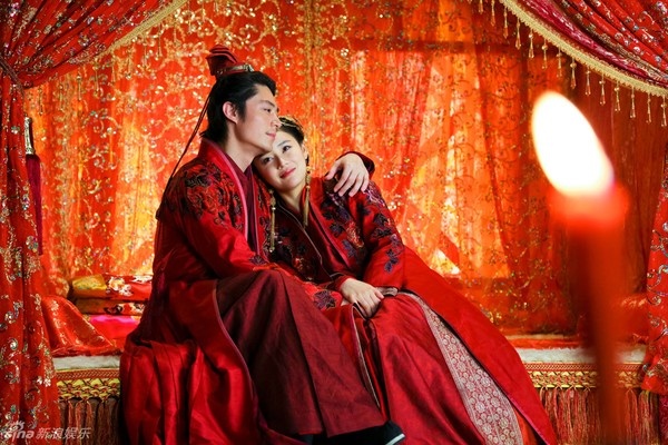 Trong Tân tiếu ngạo giang hồ, Nhậm Doanh Doanh (Viên San San) cũng có cảnh thành hôn rực trong sắc đỏ cùng Lệnh Hồ Xung (Hoắc Kiến Hoa). Giữa khung cảnh lãng mạn, cô e ấp dựa vào anh với gương mặt mãn nguyện và ngập tràn hạnh phúc.
