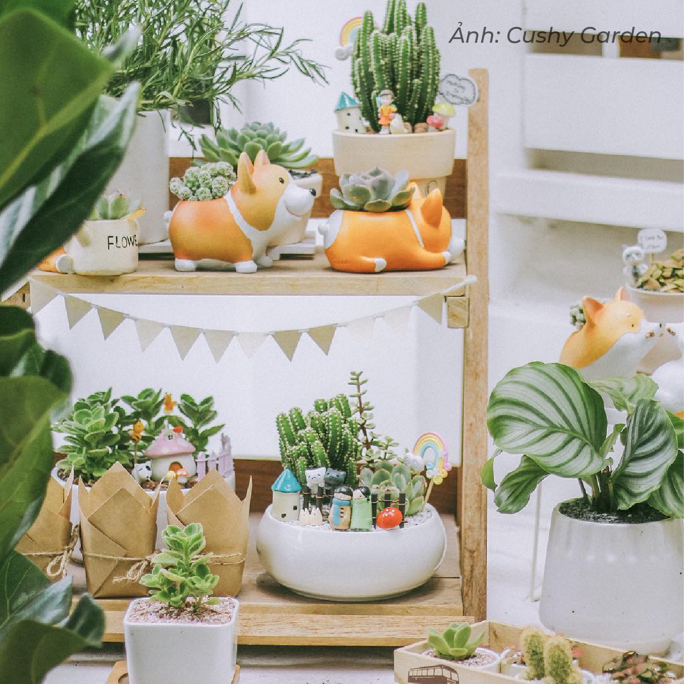 Cushy Garden chuyên về những loại cây nhỏ tạo không khí thư giãn nơi bàn làm việc. Ngoài ra, tiệm còn có mô hình và chậu được trang trí khá bắt mắt, phù hợp làm quà tặng.