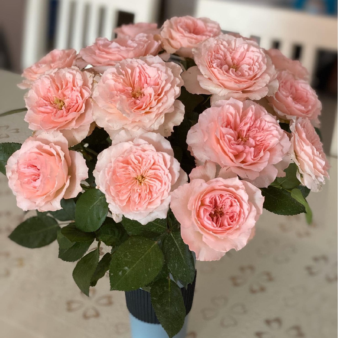 Tùy theo ngày, tiệm sẽ có các loại hoa khác nhau được cập nhật vào tối hôm trước. Sản phẩm bán chạy ở đây gồm hoa chuông, hoa huệ Pháp, hoa Lai Châu, hồng tỉ muội,... Tôi chọn Queen Mayra vì màu hồng nhạt dịu mắt, phù hợp với không gian nhà.