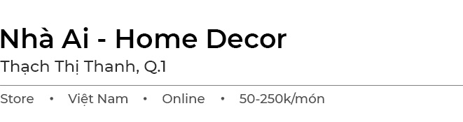 Đúng như tên gọi, Nhà Ai - Home Decor chuyên phục vụ những món đồ trang trí nhà cửa. Thương hiệu có mặt ở TP.HCM và Hà Nội nên khi đặt hàng online, bạn không phải chờ đợi quá lâu.