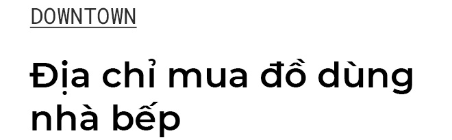 Hội yêu bếp có thể tìm thấy tất tần tật những thứ mình cần tại không gian rộng chừng 30 m2 trên đường Thạch Thị Thanh. Khăn lau, tạp dề, ống cắm đũa, bình nước, hũ gia vị, chén đĩa... được phân chia đồng bộ theo màu sắc, chất liệu.