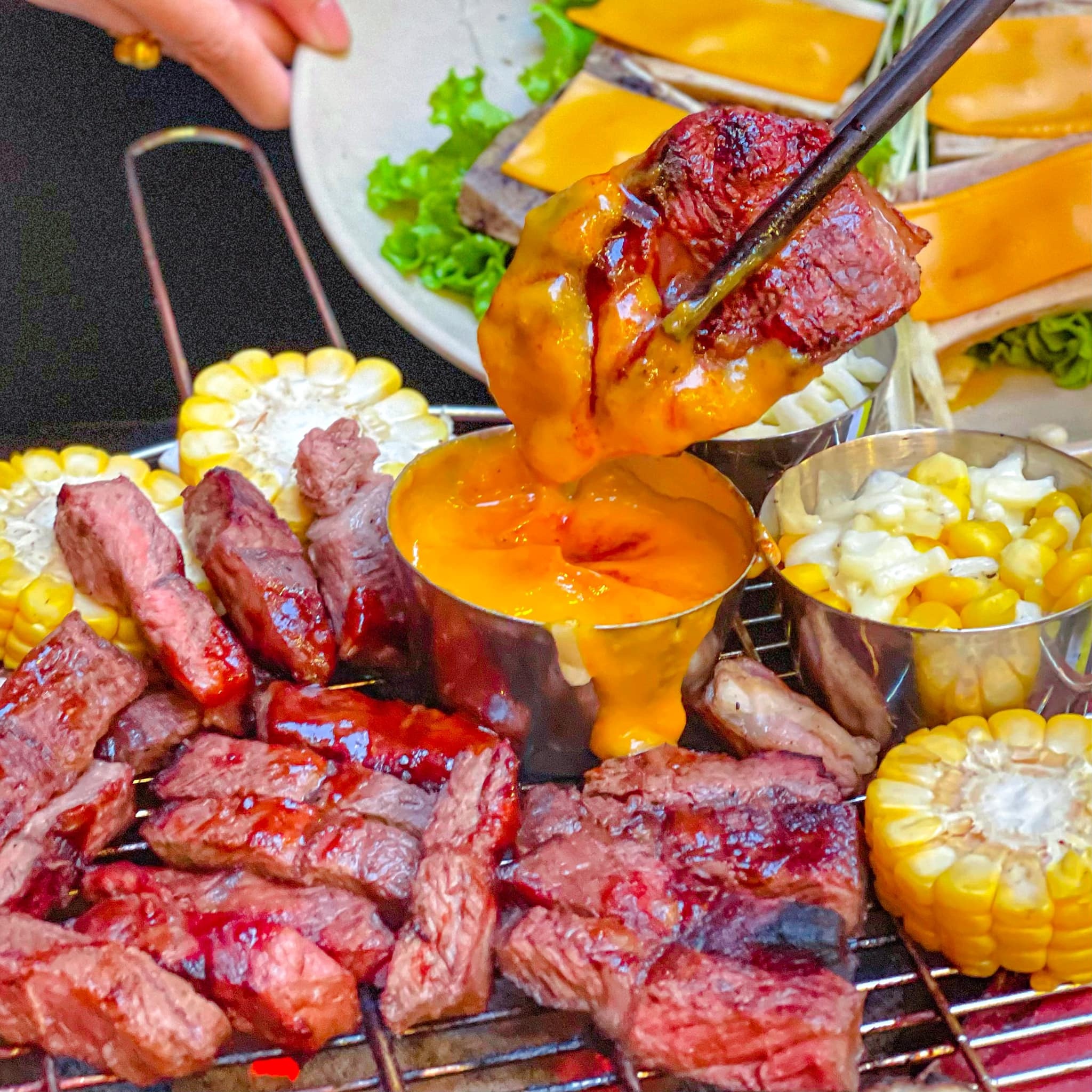 Tôi đánh giá cao hương vị bò nướng chấm với các loại sốt tại quán vì cách trang trí bắt mắt, mùi thơm hấp dẫn. Khi thưởng thức, tôi cảm nhận được độ mềm, chín vừa tới, chấm với sốt trứng thơm, lạ, sốt phô mai béo ngậy. Phần ăn kèm nhiều rau, bắp nên đỡ ngán.