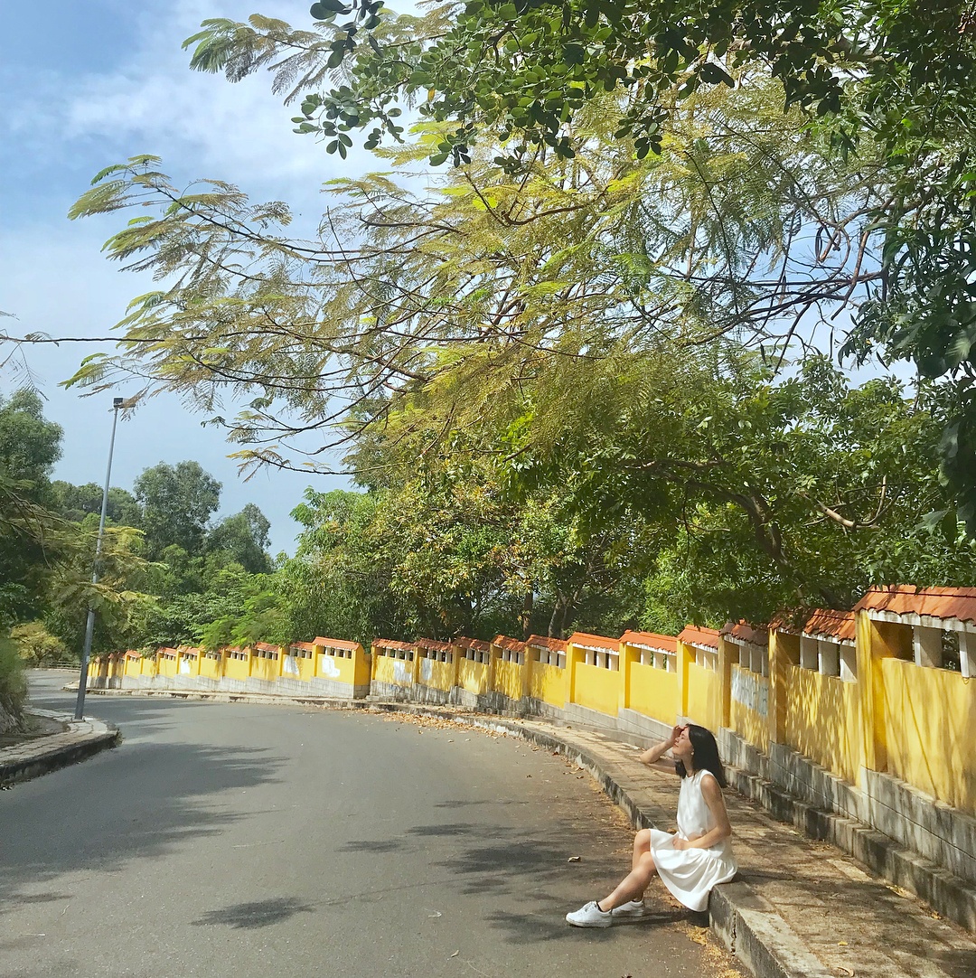 | Ngoài ngọn hải đăng, tòa nhà quản đăng cao hai tầng với kiến trúc Pháp cổ kính cùng những gốc sứ cổ thụ ở đây sẽ cho bạn những bức hình “sống ảo” rất chất. Để đến hải đăng, bạn có thể đi xe máy theo con đường nhỏ trải nhựa uốn lượn theo triền núi. Nếu chinh phục cung đường dốc quanh co này vào mùa hè, hẳn bạn sẽ ngỡ ngàng trước những tán phượng đỏ rực một góc trời. Trên đường đi, bạn cũng đừng quên thưởng thức món sữa chua Cô Tiên có tiếng ở đây. Ảnh: @pjeangle.