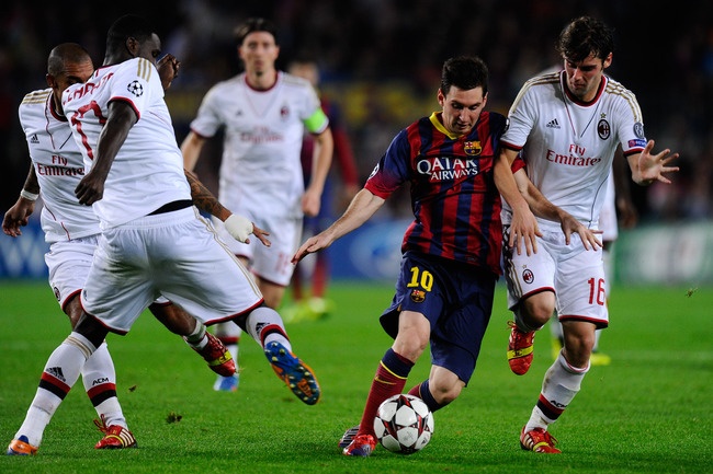 | Milan không kiểm soát tốt trận đấu khi gặp Barca. |
