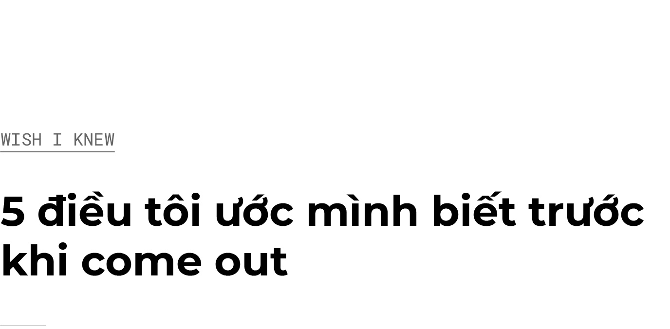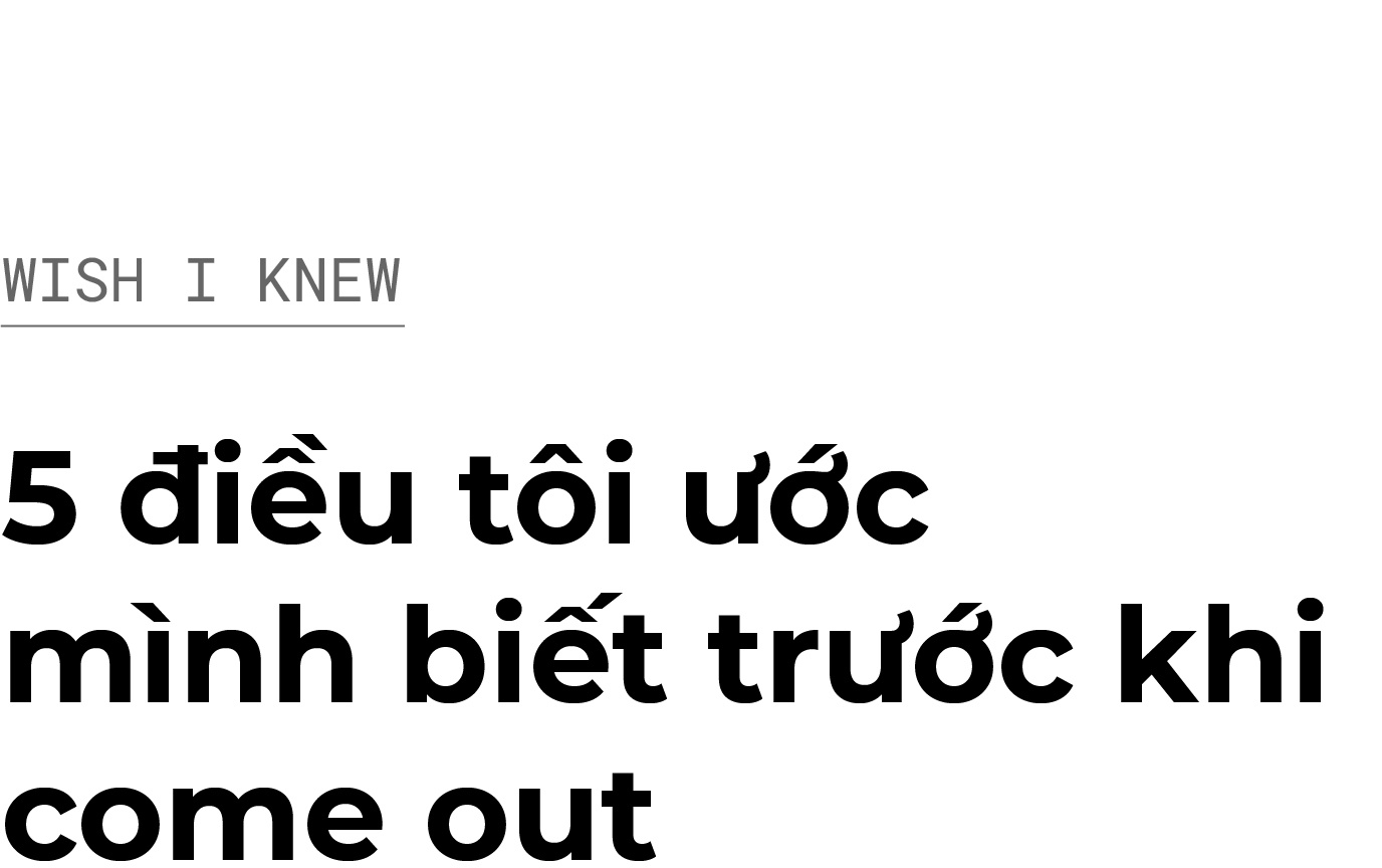 Ước gì tôi có suy nghĩ đúng đắn về bản thân, cộng đồng của mình và tự công khai sớm hơn. Nếu come out sớm, có lẽ những năm đi học của tôi sẽ thư giãn hơn rất nhiều, lại không làm tổn thương cô gái kia.