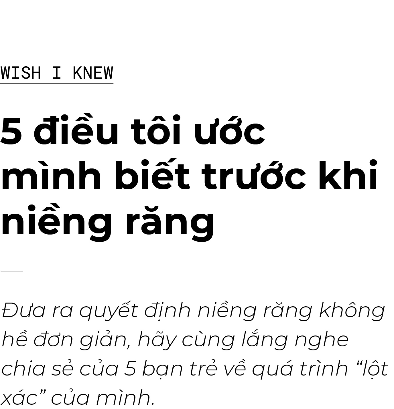 Khi nhận ra điều này thì đã quá “độ tuổi vàng” (12-16 tuổi) để niềng răng, phần vì ngại bạn bè sẽ gọi mình là “răng sắt” nên tôi đã chần chừ mãi đến năm 23 tuổi mới đủ can đảm để thực hiện việc này.