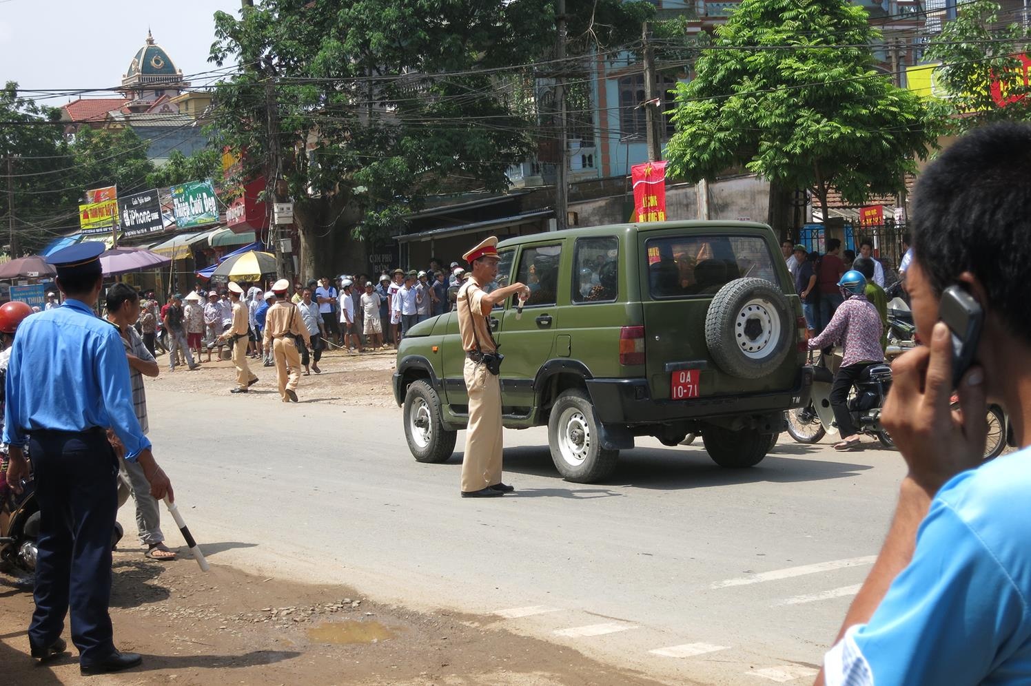 | An ninh bố trí canh phòng cả ngả vào hiện trường từ ngoài cánh đồng. |