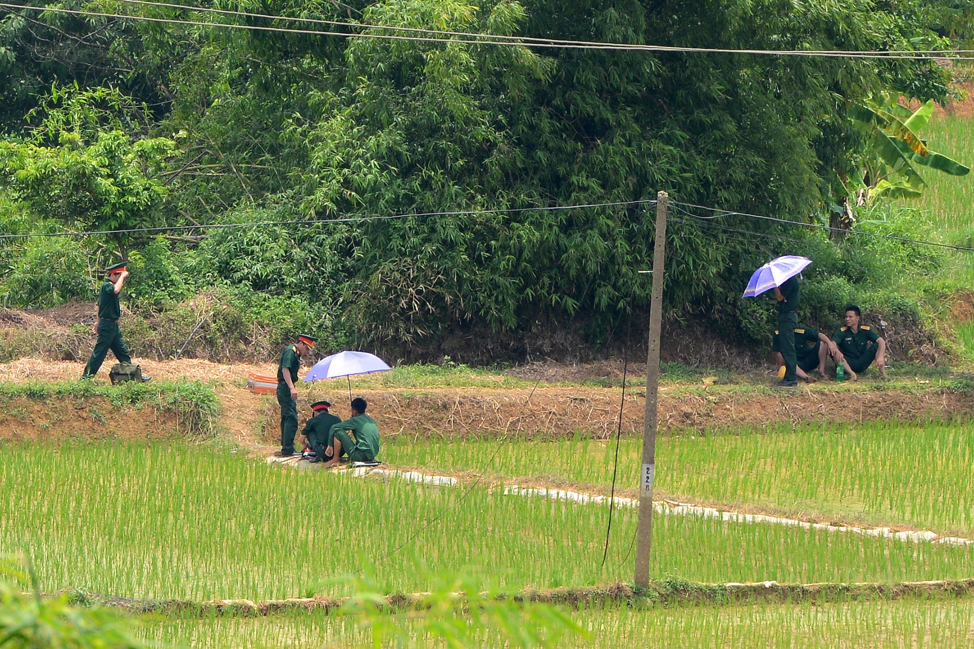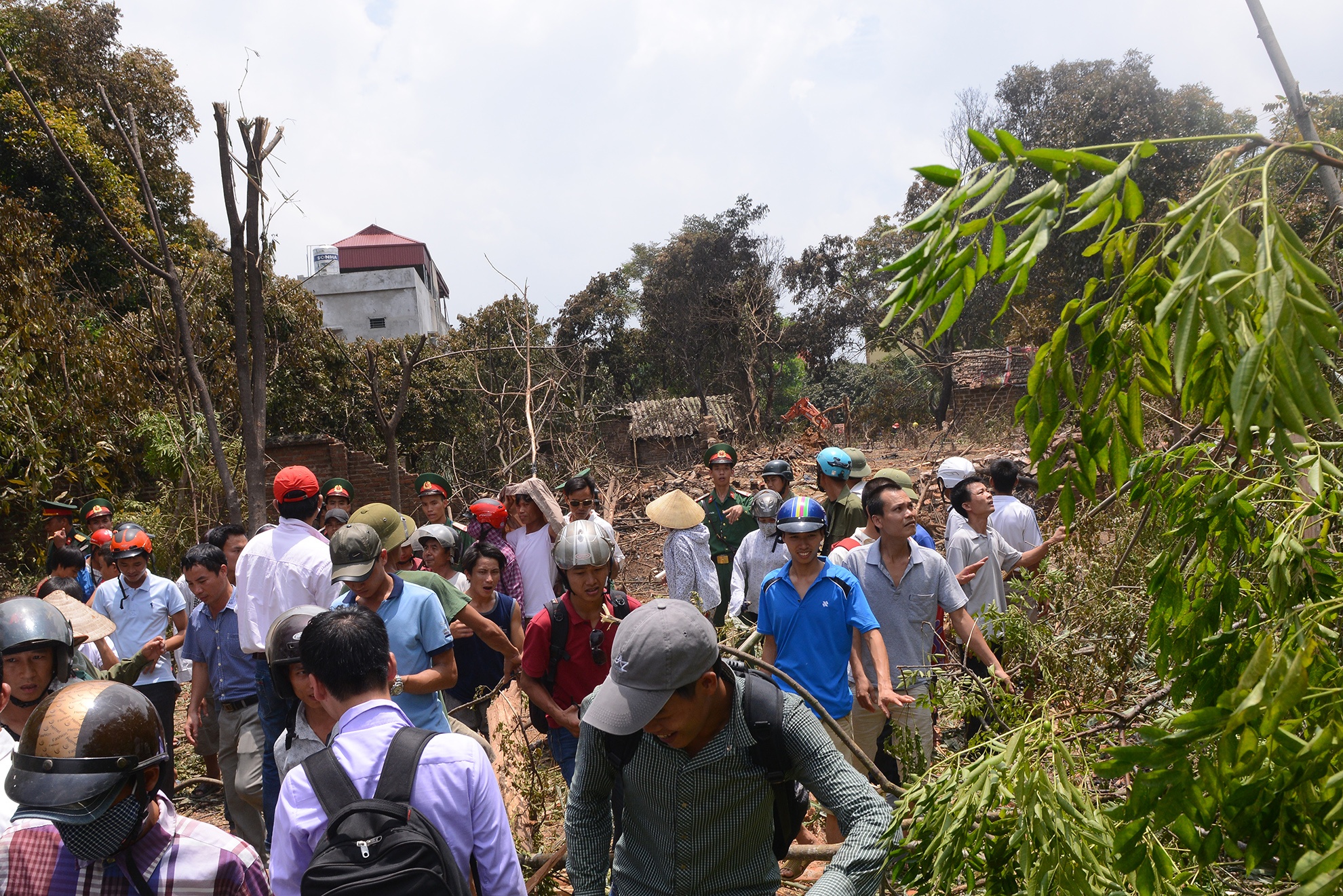 | Đến 12h, toàn bộ xác máy bay rơi cùng nạn nhân đã được đưa hết ra khỏi hiện trường. Lực lượng quân đội và an ninh vòng ngoài đã rút về hết. Hàng trăm người dân hiếu kỳ đã lội ruộng trèo rào vào hiện trường để xem. |