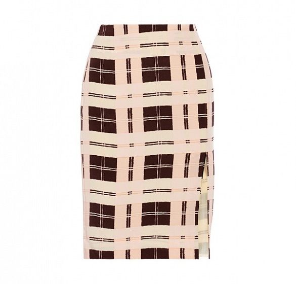 Chân váy kẻ carô mix kèm giày cao gót giúp trang phục công sở bớt nhàm chán.