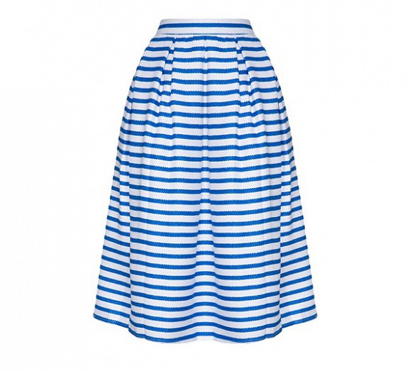 Áo kẻ ngang mix kèm chân váy midi giúp bạn trở nên vô cùng thanh lịch và quyến rũ khi xuống phố.