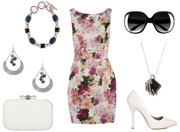 | Đầm hoa sử dụng khi dự tiệc với bộ phụ kiện trắng hết sức thanh lịch. |