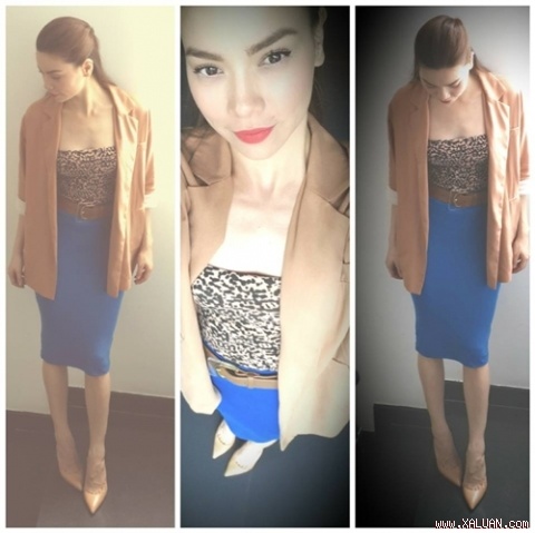 Hà Hồ hút hồn với cách mix áo quây da báo kèm chân váy mii thanh lịch.
